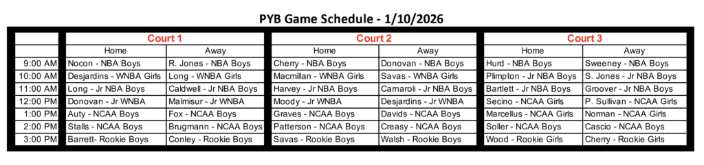 Portsmouth Youth Basketball (PYB), a non-profit organization, was formed in 2007 with the goal of teaching fundamental basketball skills to children, grades 2nd – 8th, in a positive environment of teamwork and sportsmanship. The PYB season will run from December to February.