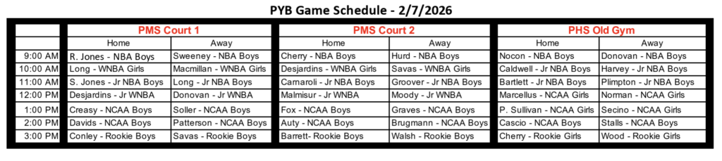 Portsmouth Youth Basketball (PYB), a non-profit organization, was formed in 2007 with the goal of teaching fundamental basketball skills to children, grades 2nd – 8th, in a positive environment of teamwork and sportsmanship. The PYB season will run from December to February.